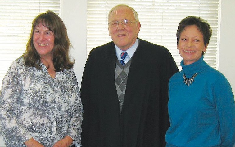 Court appointed special advocates, Om Channa (left) and Dyann Van Dusen (right), were sworn in by the Honorable Wayne R. Parrish at the Mariposa County Courthouse on Dec. 10. They have been assigned to assist children who are dependents of the court.