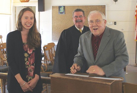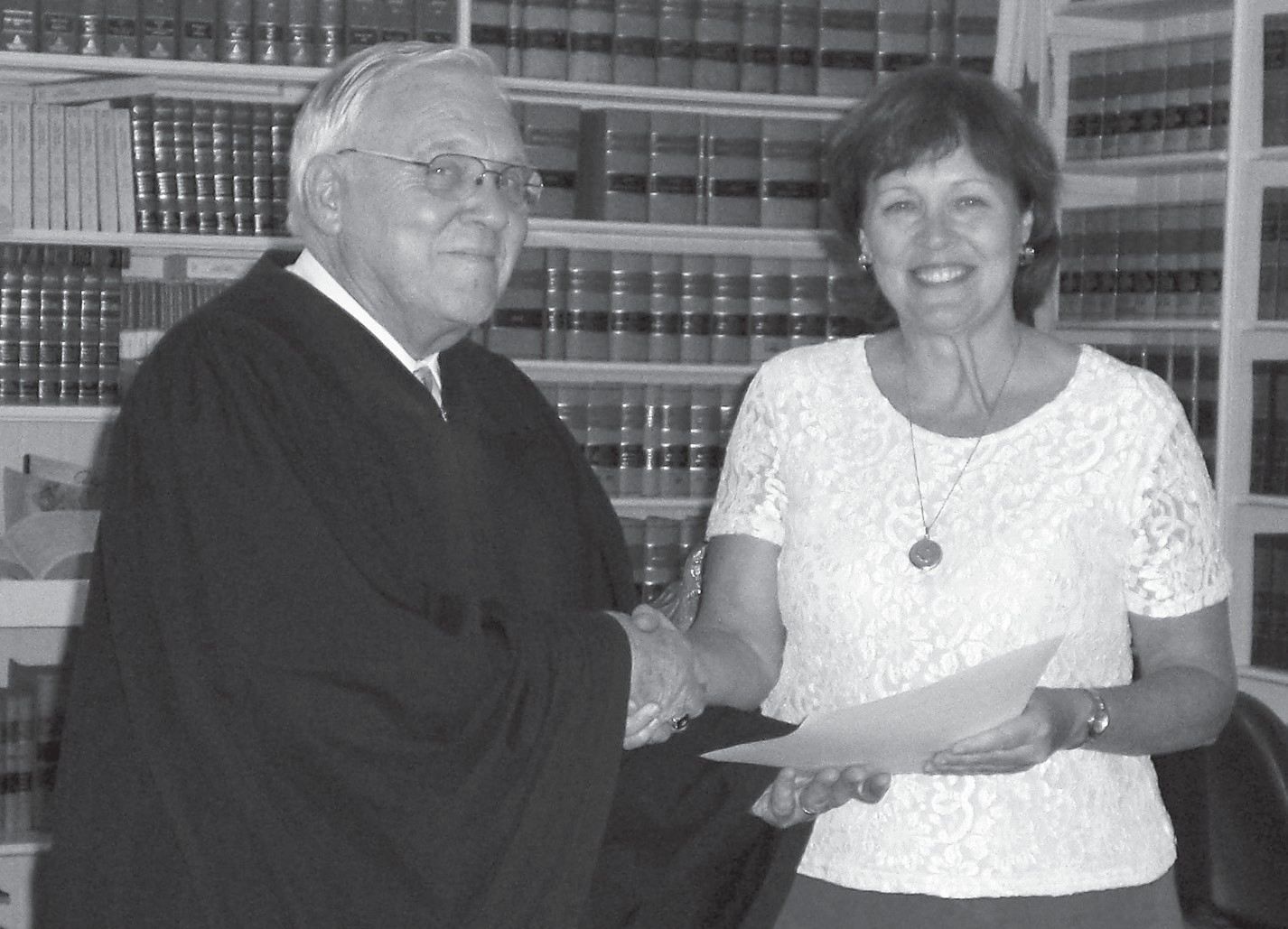 Mariposa County Superior Court Judge Wayne Parrish swears in one of the newest members of the Juvenile Justice Commission for Mariposa County, Shawnee Long.