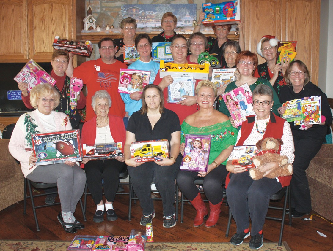 The home of Elaine Parrish was the scene of the TOPS annual Christmas potluck. Each member brought a dish to share, a canned food contribution for Manna House and a toy for the KOPS for KIDS distribution. Seasonal games were played and Christmas songs were sung.
