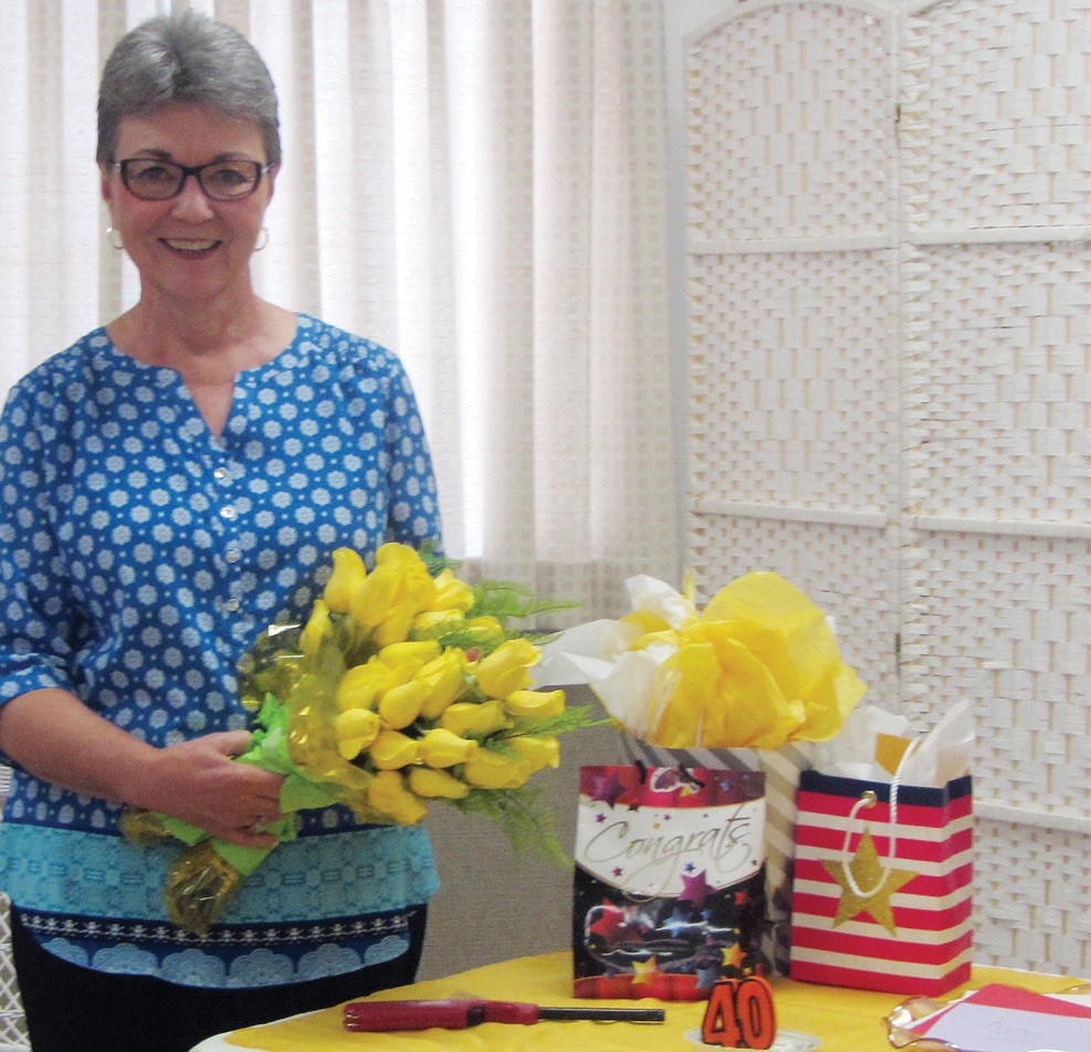 Forty yellow roses were awarded to Parrish for her 40 years of dedication to TOPS. The celebration culminated with a luncheon at the Charles Street Dinner House.