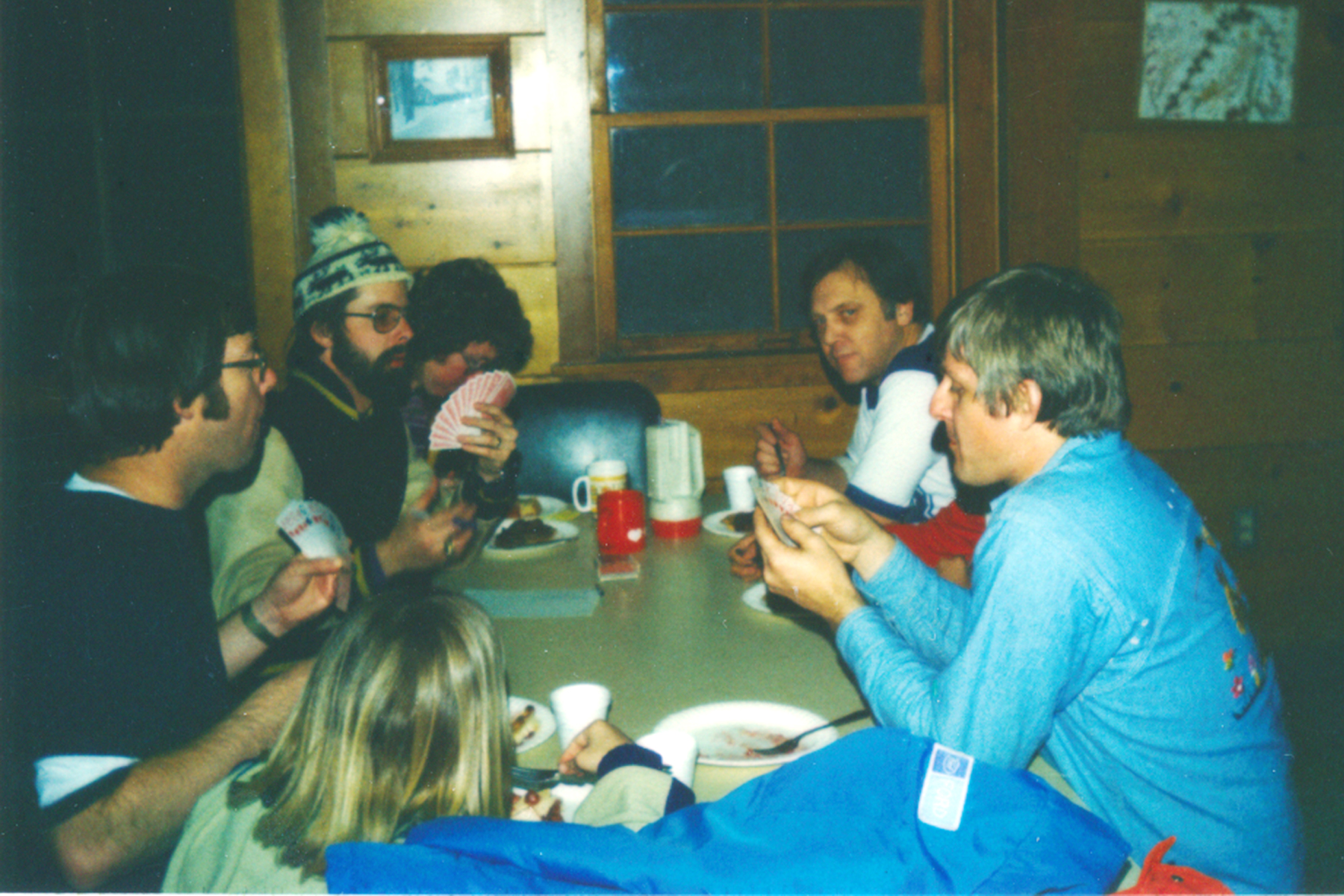 Dick playing cards with Jim LeGros, Bob Belcher and Steve DeSavino at Angeles Crest Christian Camp