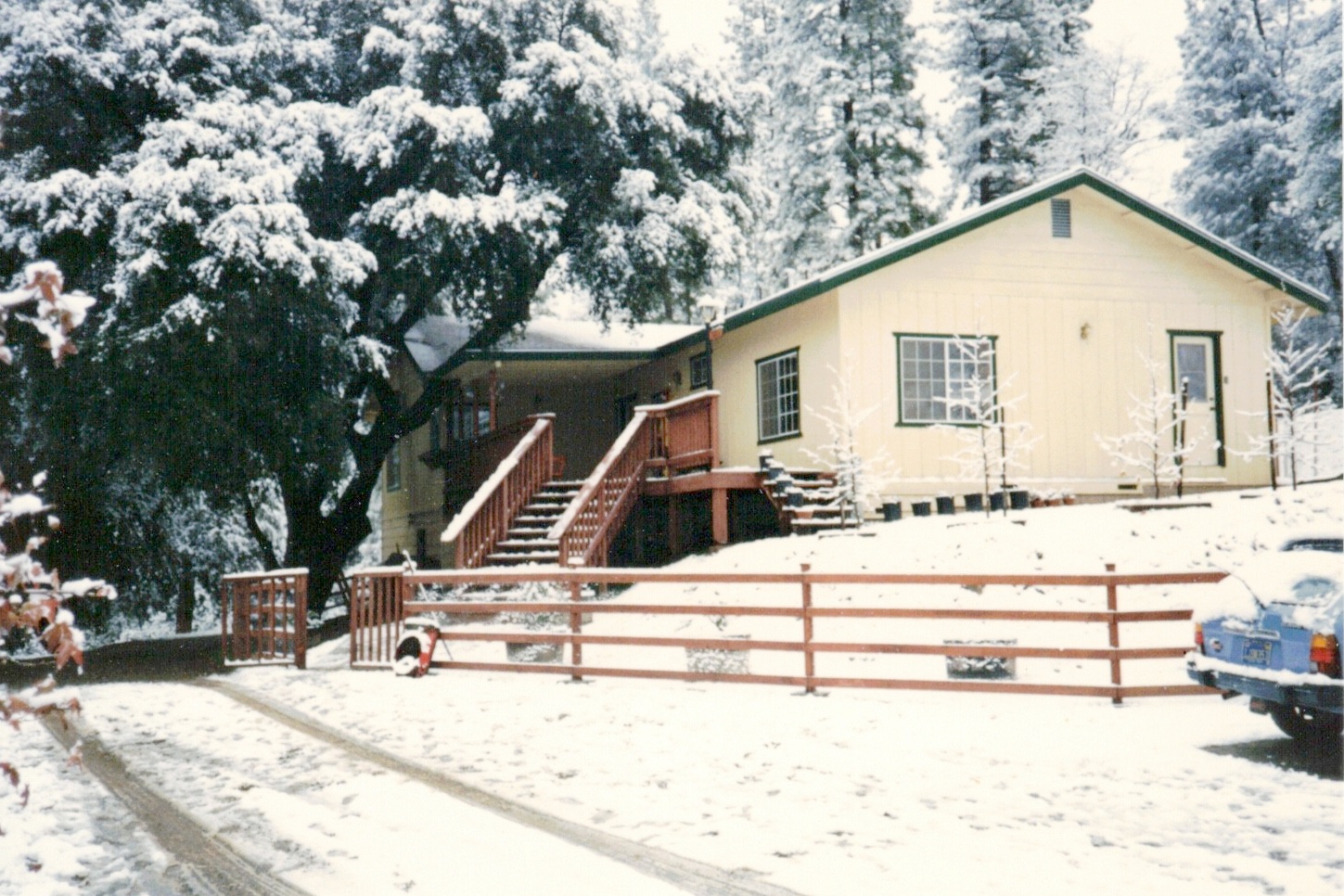 We were able to visit Dick and Elaine a few times after their move to Mariposa. Our first visit was during the winter months and I managed to get our family sedan stuck in a small snow bank when I was turning around to come back to their house after missing their driveway off of Highway 49. I had begun hiking down the highway as a mild snow fell so that I could get back to Dick’s place to get some help with our car. Remember, there were no cell phones in everyone’s pockets at that time. A passing motorist stopped and picked me up since they saw that I was walking along the highway shoulder in the cold and snow. They brought me to Dick and Elaine’s place. Dick and Bruce Pickard then brought a chain and vehicle to our stranded car where my wife and three kids were all waiting. Our car was pulled out and we later had a nice visit with everyone at Dick & Elaine’s place after our unplanned adventure in the snow.